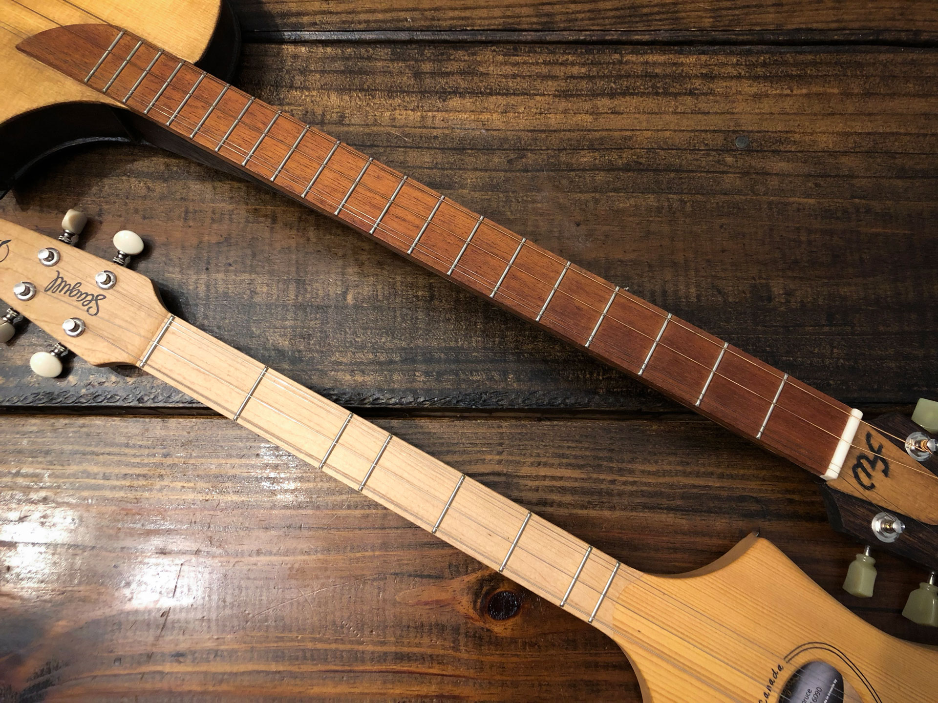 Evan originally designed the dulcimer to work as a fun lead instrument in Catchlight. You can find hand-held strum dulcimers for sale but they are mostly built with a diatonic fret layout which makes it easy to play scales in a song but forces you to tune the instrument to whatever key the song is in.